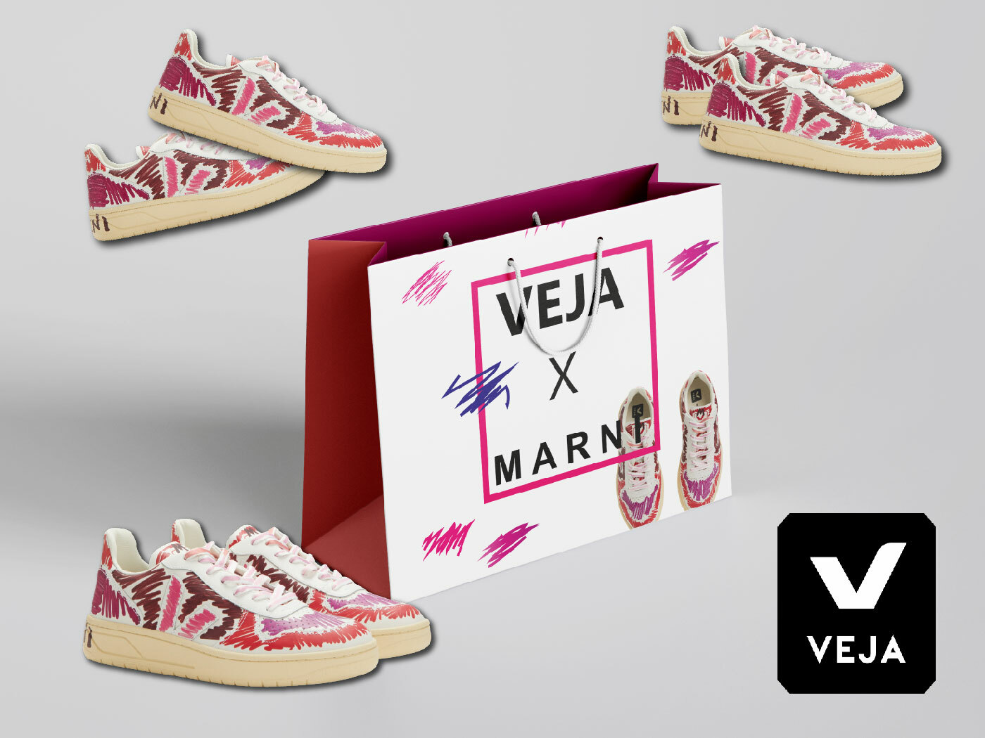 Дизайн-концепт коробки для кед из коллаборации Veja x Marni
